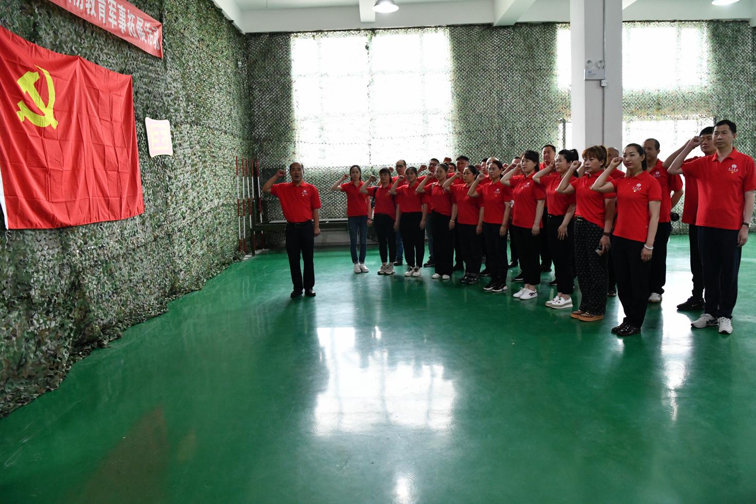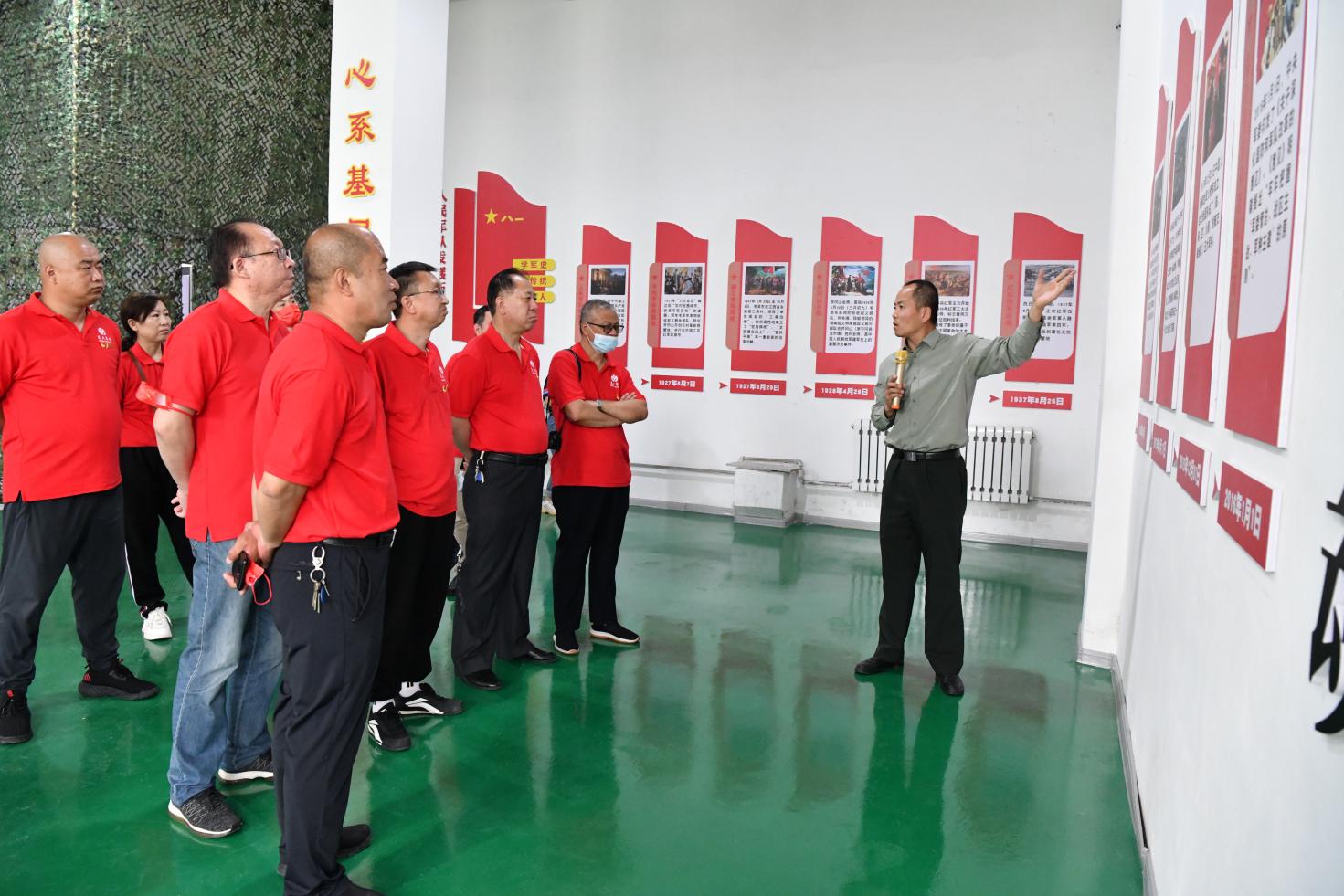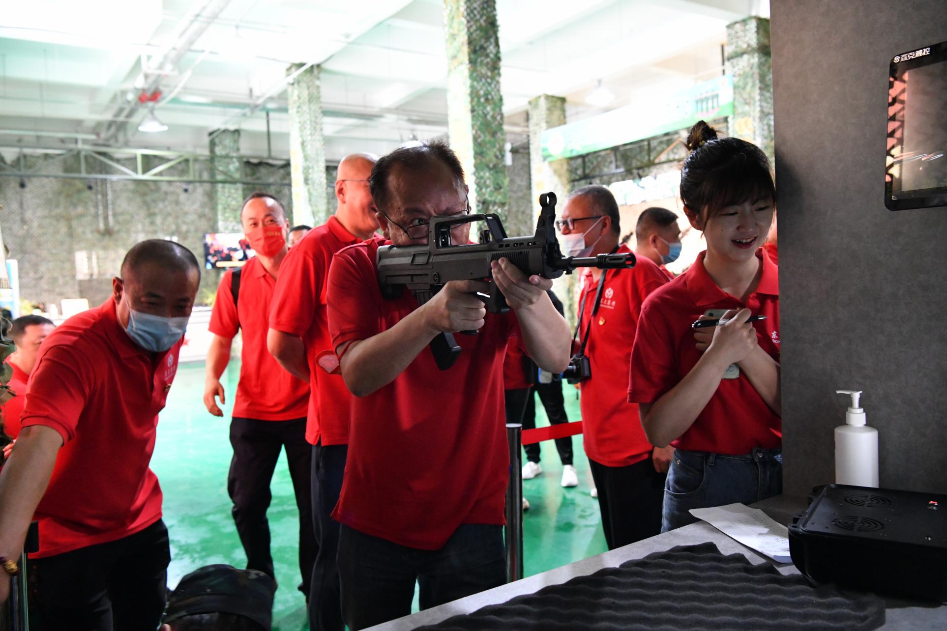 在國防教育基地內(nèi)學(xué)習(xí)黨史軍史知識